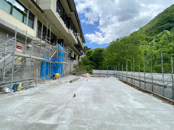 コンクリート土間打が終わり、今後は手すり取付、目隠し取付、ウッドデッキ工事になります。