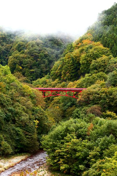 松川渓谷では、標高の高い場所から紅葉が進んでいます。